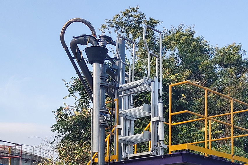集成比高,安裝就位及維護方便裝車樓將控制儀、流量計、閥門、管道、附屬設(shè)備、鶴管、中間連接件及電纜、橋架等集成在一起,現(xiàn)場安裝方便,并且整體維護方便。