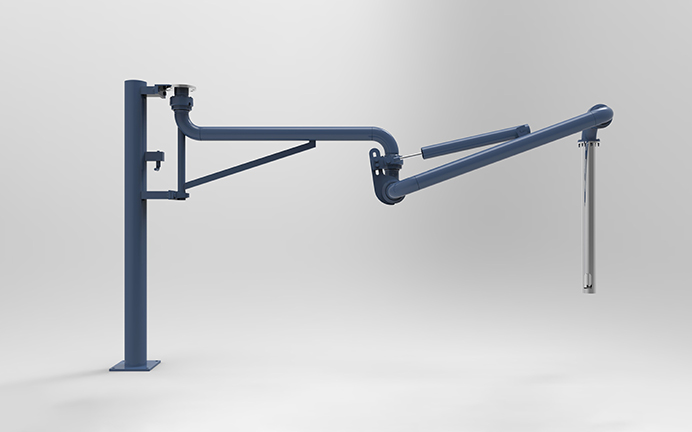 鶴管主要由固定、回轉、操作、平衡等機構和油管組成。其中回轉機構(回轉接頭)是用鍛鋼或鋁合金精心制造,內裝復列球軸承,不銹鋼特殊密封圈,它旋轉靈活、密封性能可靠、經久耐用。平衡系統有配重、扭簧、壓簧、拉簧和絲杠以及液壓和氣動平衡等型式,均能以很小的力進行操作。是由轉動靈活、密封性好的旋轉接頭與管道串聯起來,用于槽車與棧橋儲運管線之間,進行液體介質傳輸作業的設備。