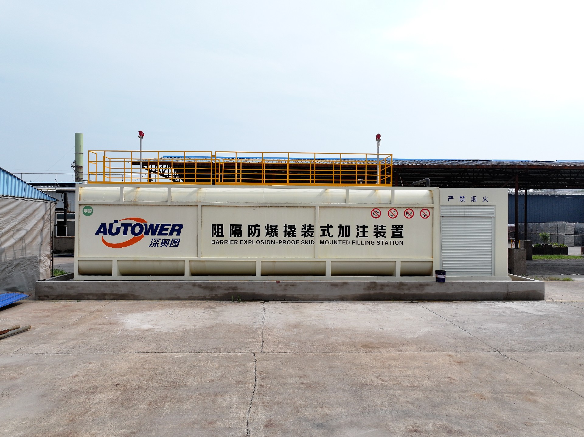 1、單壁罐帶標(biāo)準(zhǔn)容器,帶二手內(nèi)部點(diǎn)火抑制系統(tǒng)移動式加油檐